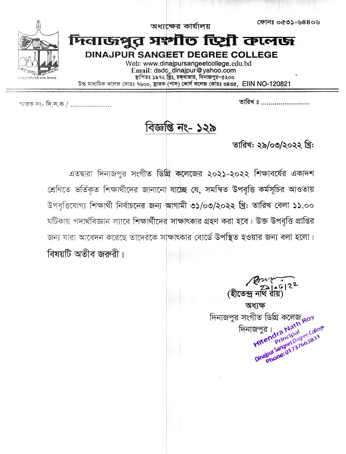 E-mail: dsdc_dinajpur@yahoo.com Facebook: facebook.com/দিনাজপুর-সংগীত-ডিগ্রী-কলেজ-100363341788810 Phone: 0531-64406